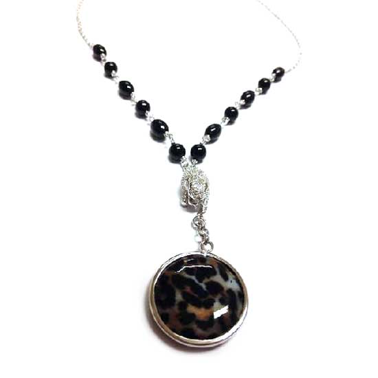 This presented sterling silver pendant features a round shape. It flaunts an MOP with animal-print patterns for a wild yet chic accent. This displayed sterling silver pendant goes great with a wide range of outfits.