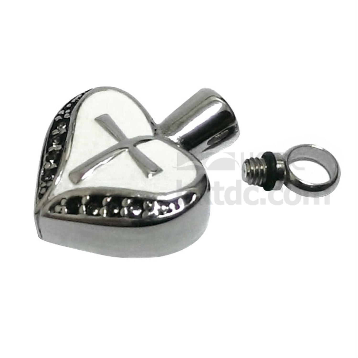 Adorn your favorite necklace with this enameled pendent that plays a glossy finish. The etched cross center joins with opulent borders to depict style and modern elegance on its daring heart shape. This one is not only an enticing companion to your necklace, but also a delightful choice of jewelry collection.