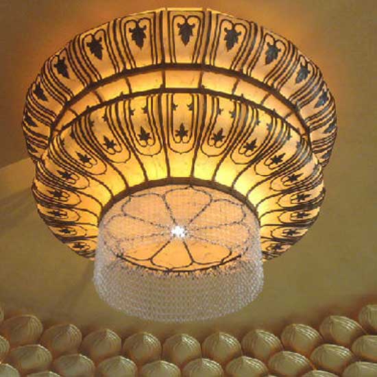 Displayed is a pendant chandelier made of faux alabaster for a charming appearance. The laser-cut metal structure guarantees a solid body while the crystal beads add a touch of fashion to this piece. This pendant chandelier can also be tailor made according to your needs.