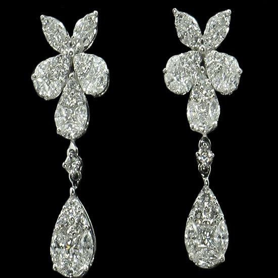 Brilliant pear-shaped simulated earrings with flower-shaped earring studs.