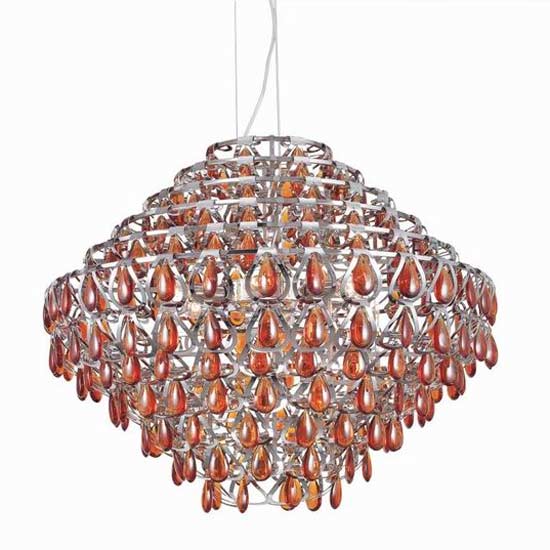 Displayed is an exquisite pendant lamp that is designed for stylish households. This excellent pendant lamp is made of chrome material. This excellent lamp boasts customizable color on glass details.