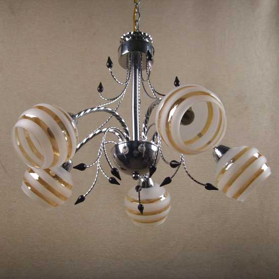 This gorgeous pendant lamp comes with five downward lampshades, imitating a fountain. The stripe lampshades match the shiny black body for added sophistication. Embellished with black vivid candle-like ornaments, the ceiling lamp looks more graceful. Decorate the living room with this beautiful lamp.