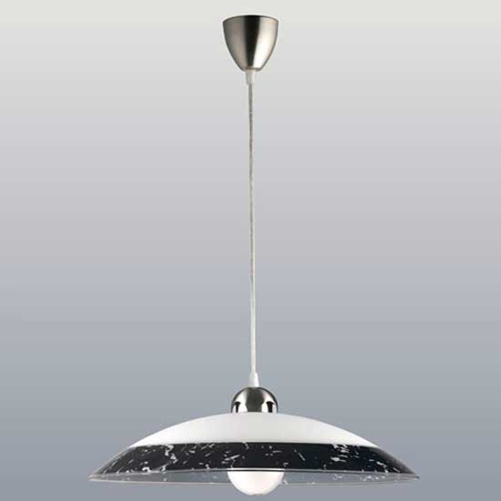 This pendant lamp comes with a convex white reflector with a black rim. The power cord is easily adjustable for various needs. This pendant lamp makes an exquisite lighting product for your space.