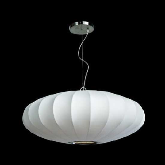 This pendant lamp features a cocoon-like shade made of polymer resin for sturdiness. The succinct white and silvery colors lend a modern touch to your room easily. This elegant pendant lamp is a great decoration choice.