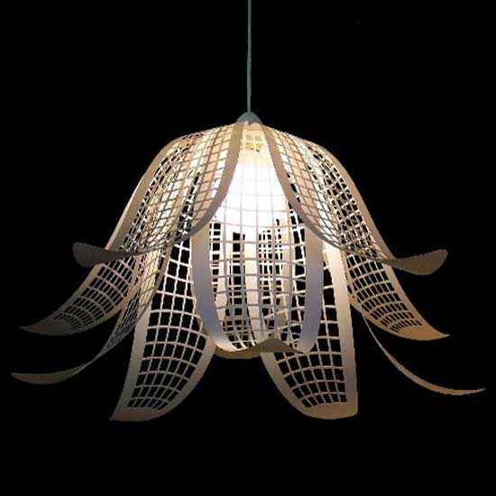This pendant lamp is formed by 12 perforated leaves in white transparent material. It will add an artistic and unique touch to your home décor. The ball-shaped lamp bulb completes this design for a perfect finish.