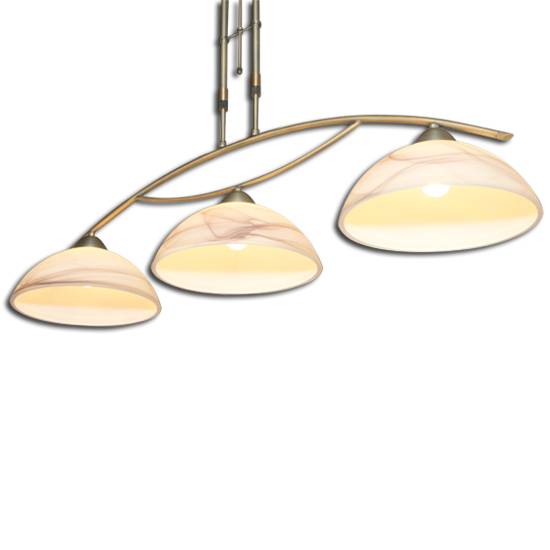 This is a pendant light featuring the white lamp shades with painting. The lamp shads are held by curved metal rods which are modern in style. Soft lighting is produced by the pendant light and relaxing atmosphere is created with the light.