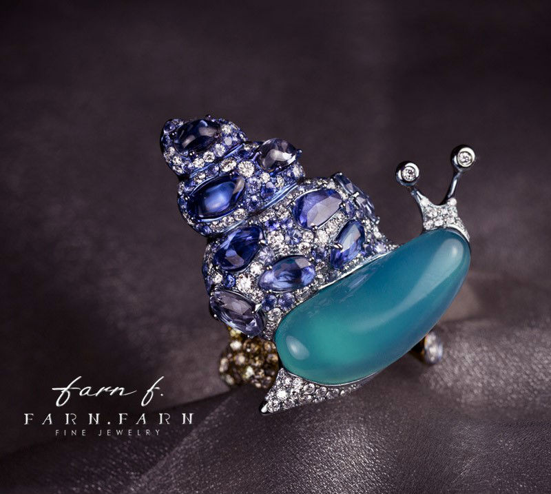 This work is made from Taiwan Sapphire (blue chalcedony) and diamonds, fancy sapphire, champagne diamonds, the material titanium
