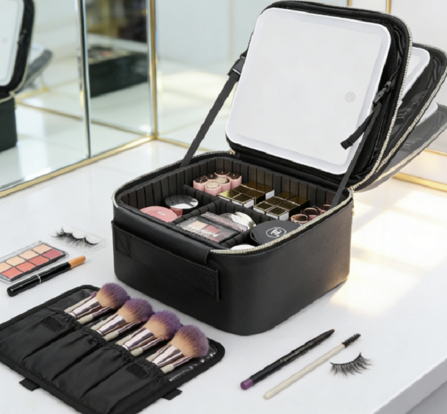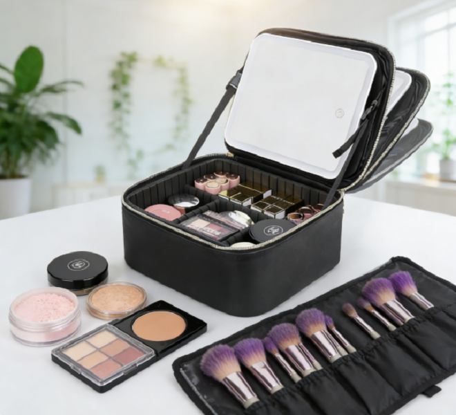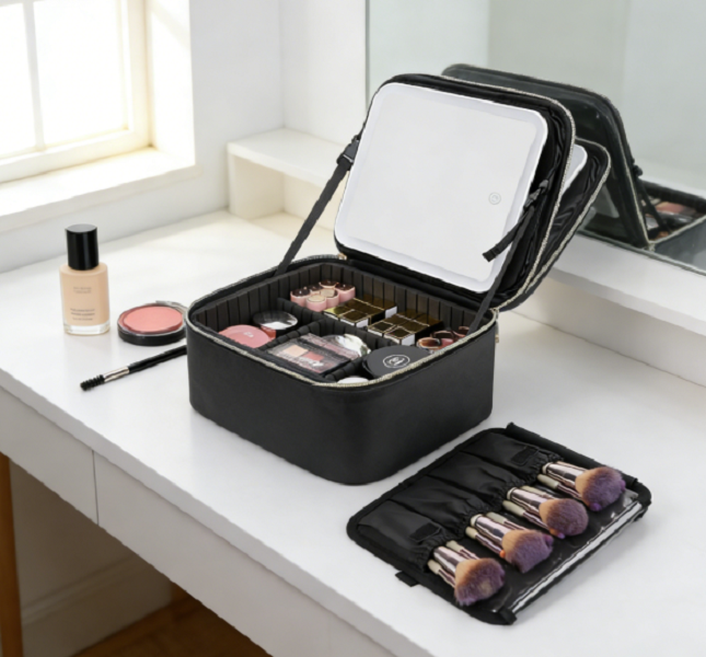 Designed with roomy interior and optional compartments to keep cosmetics organized.