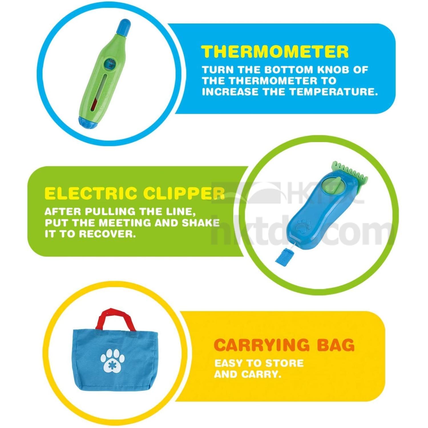 Product has three Series, such as Pet vet doctor kit, Grooming kit, Feeding kit
