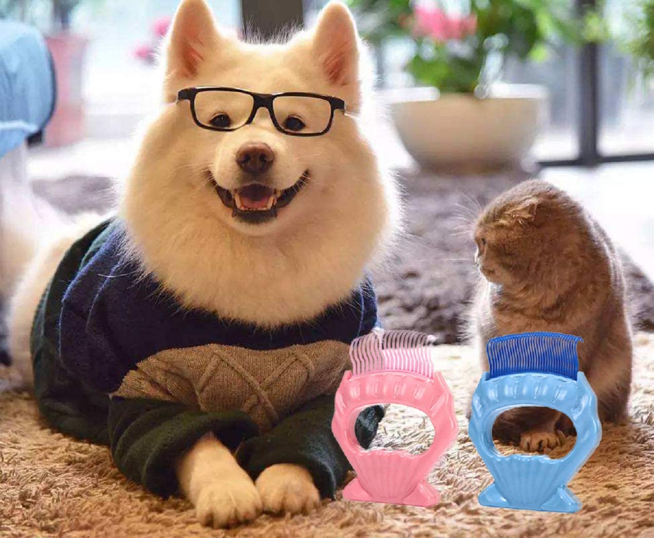 Pet Comb Dog Cat Shedding Trimming Hair Removal Soft Brush Pet Grooming Massage Tools, Safe and Gentle Plastic Claw Teeth for Removing Matted Fur