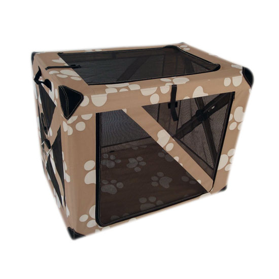 Available is a collapsible pet kennel that stands with support of steel tubes. The housing is made of dense polyester for a durable texture. This kennel makes a safe shelter for your beloved little pet.
