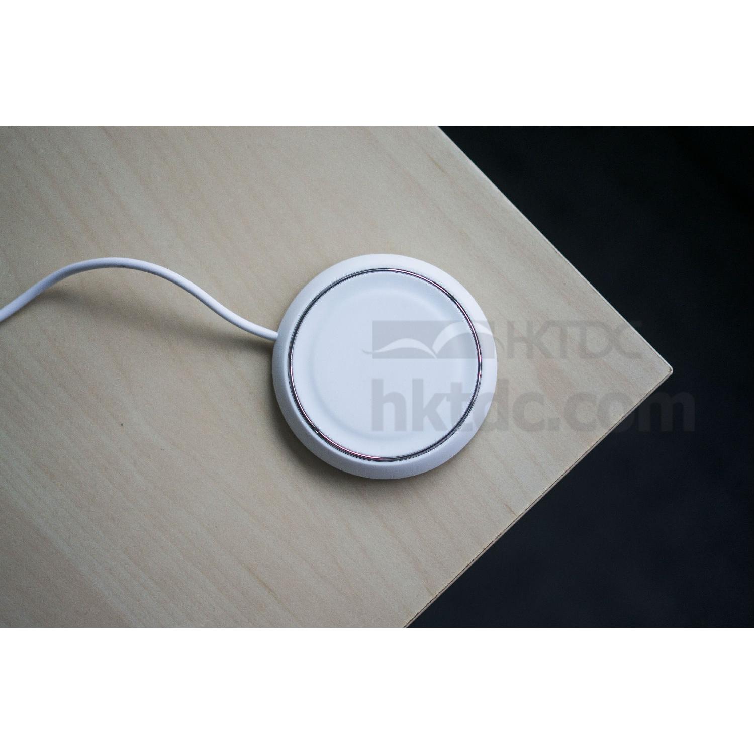 Featured here is a wireless QI charger for charging phones. You can simply place a QI compatible phone on top to charge and no cables are needed. This efficient and convenient charger is great for travelling use.