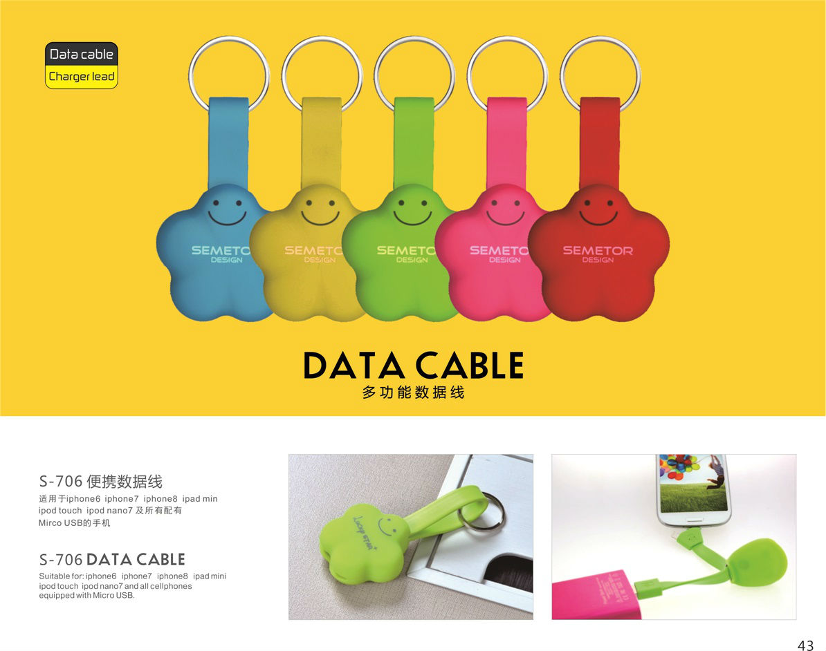 • USB interface: Standard; Micro USB; Mini USB Material: Soft Silicon Match: Iphone 5 end, support IOS 7.0.2 system Patent No: 2013 3 0509610.0 For charging device and transfer data