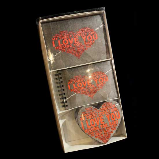 The photo accessory set comes with three pieces. They include a box, a photo frame and a photo album. They are decorated with heart-shaped patterns for a touch of style.