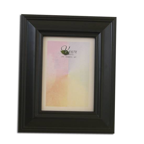 This is a dark brown wooden photo frame. The frames are engraved with straight lines. This traditional design photo frame is perfect to put on the desk and bedroom cupboards.