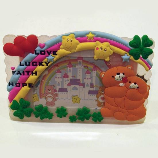 This photo frame features the theme of a teddy bear in a lovely design. The vivid rainbow, star and heart patterns give out a feeling of joy. It certainly is a perfect item to display your treasured photographs.