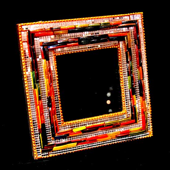 This square photo frame is made up of vivid colorful short strips with a square net. It creates an illusive and appealing effect. Store a memorable photo with this unique photo frame.