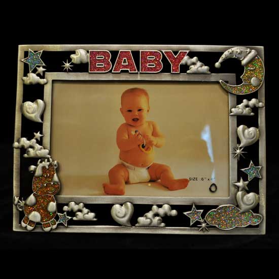 This stunning photo frame comes in a sleek rectangular shape, showcasing your favorite photograph in style. The frame is adorned with delicate embossed ornaments in various shapes. This photo frame fits standard 6" x 4" pictures.