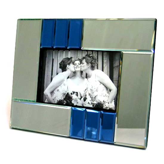 This photo frame is constituted by a number of rectangular mirrors of two sizes. The photo display area in a horizontal shape is situated in the center. The whole piece adds color to your shelves or tables with a contemporary appearance.