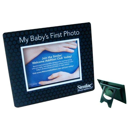 The photo frame features a rectangular-shaped design with plastic construction. It is imprinted with dotted patterns, a message and logo for a decorative touch. Frame your favorite moment in time with this photo frame.