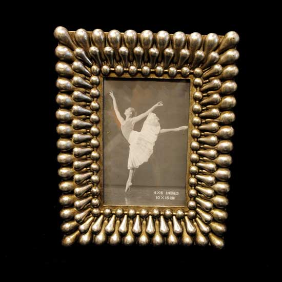 Pictured is a photo frame designed in a vintage bronze tone. The resin construction is durable and long-lasting. The photo frame keeps your favorite piece of memory alive.