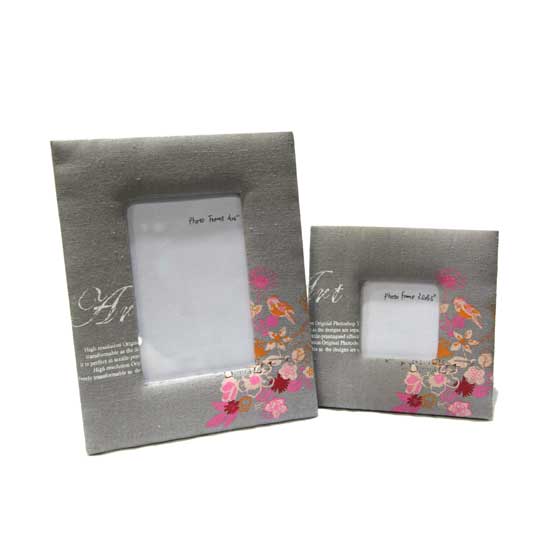 These stylish photo frames are wrapped with gray linen fabric. The classic photo frames are accented with vivid bird and flower motifs for added attractiveness. The photo frames are available with square and rectangular-shaped designs for your selection.