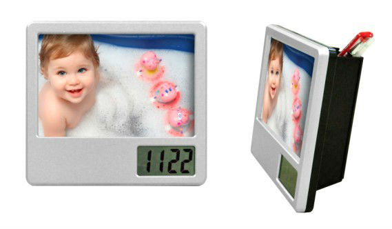 LCD clock with photoframe and penholder