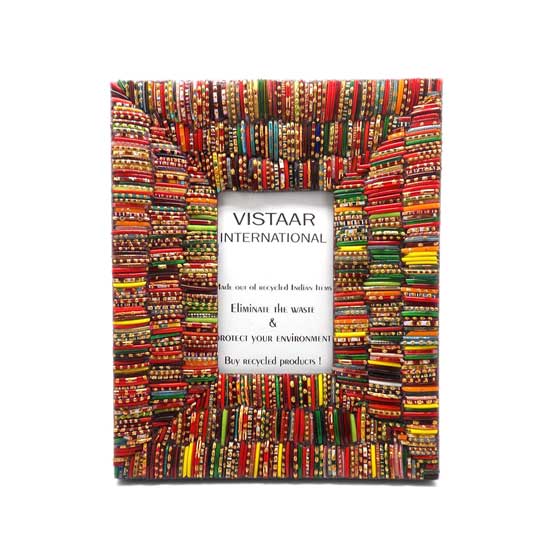 This is a picture frame that comes in a vertical shape and boasts exquisite craftsmanship. It is accented with a 3-row glass bangle ornament in different bright colors. This elegant picture frame is an ideal addition to complete any modern room.