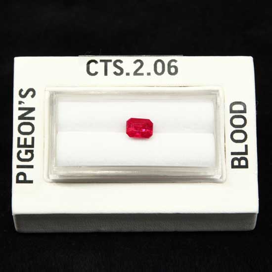 This extremely rare pigeon's blood ruby gets its name from its deep red color. It is finely cut in an emerald shape to maximize its beauty. This finest grading ruby is ideal for making high-end jewelry, such as bracelets, necklaces and rings.