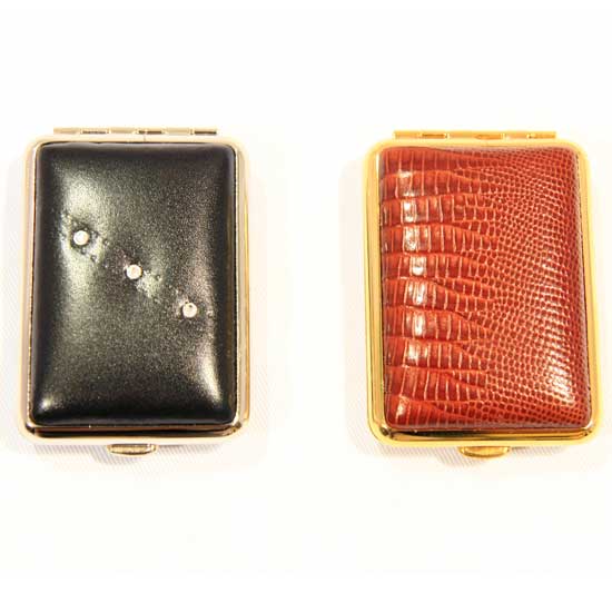 Highlighted is a series of pill cases with a classic leather finish. The decorative Swarovski crystals offer added glamor and beauty. Carry your pills in style with any of these pill cases.
