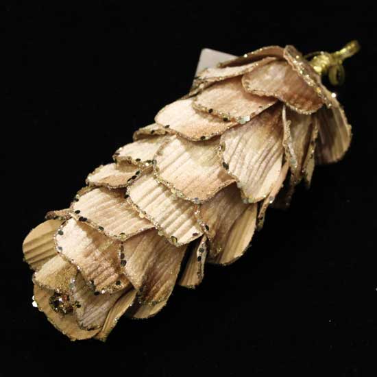 This vivid ornament comes in a pine cone shape. With pieces of foam imitating the layers of real pine cones, this brilliant pine cone looks like the real ones. Embellished by shiny pieces on the edges of the layers, the foam pine cone looks more splendid. Decorate your house with this nice cone.
