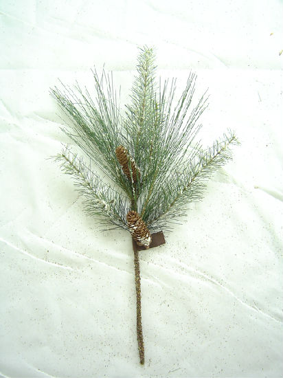 26" mixed needle pine with snow and pine cone spray.