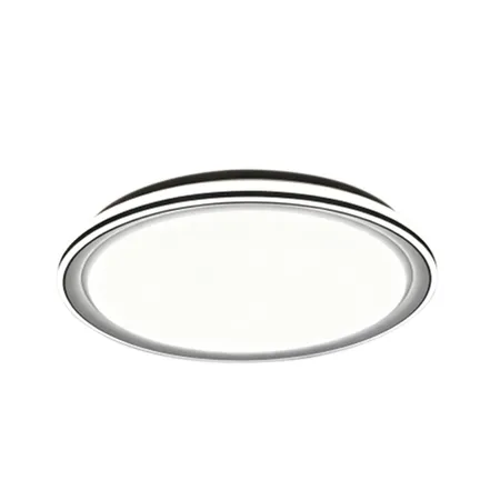 This is a circular ceiling light with a multi - ring design. The lamp body is mainly white, decorated with black lines. When lit, the central light - emitting area can emit bright light, and the outer ring will also emit a soft halo. The overall style is simple, grand and has a sense of hierarchy. It is suitable for installation in home spaces such as living rooms and bedrooms, creating a bright and comfortable lighting atmosphere, fitting home decoration styles like modern minimalist.