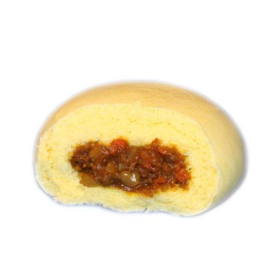 Featured here is a round-shaped pizza bun with tonkiki curry pork stuffing. The soft and flavorful pizza bun is a treat to your palate. It can be served as side dishes to your meal.