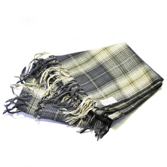 This scarf features tassels on the ends. This hand-woven scarf has a fashionable plaid pattern. The gray and black colors give the delicately made scarf a more elegant touch.