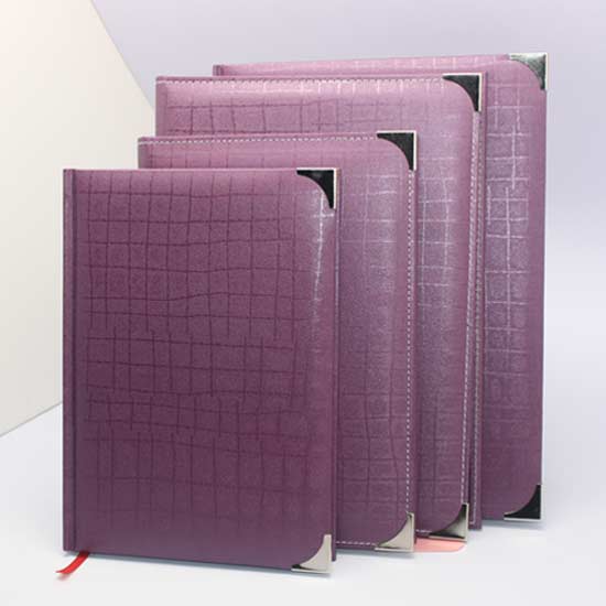 This plain notebook comes with a delicate and elegant leather cover topped with irregular check patterns. The corners are protected by metal pieces for added endurance. The red string further serves as a functional bookmark for you.