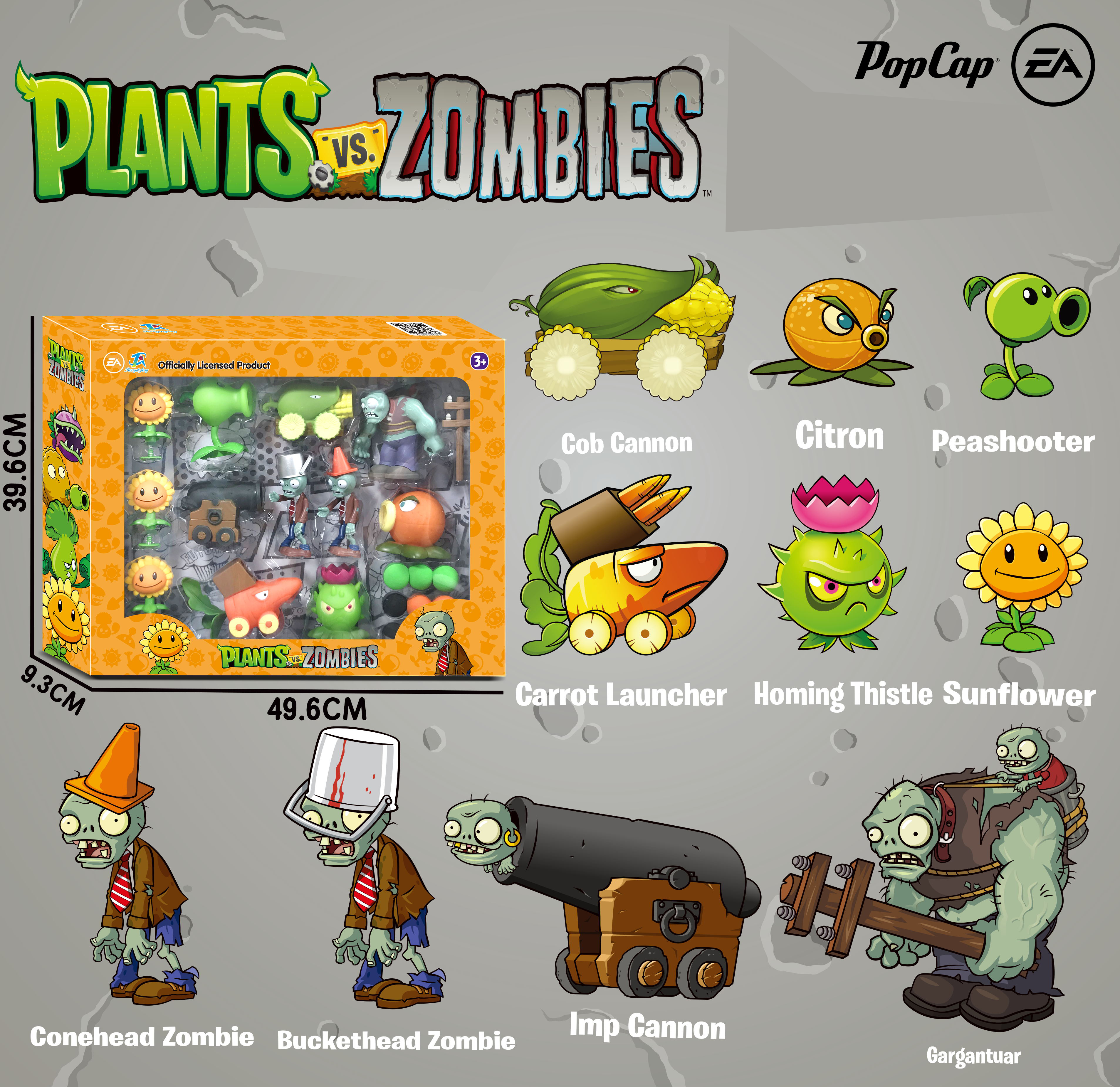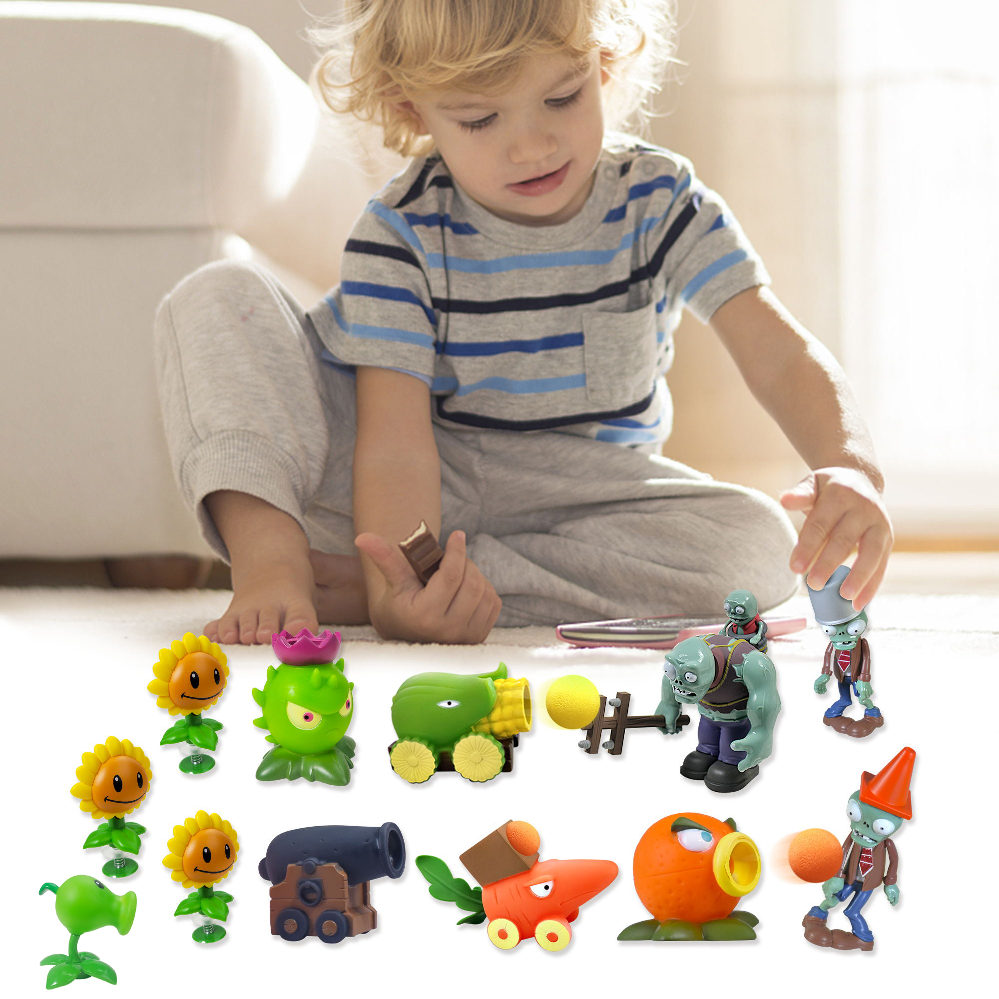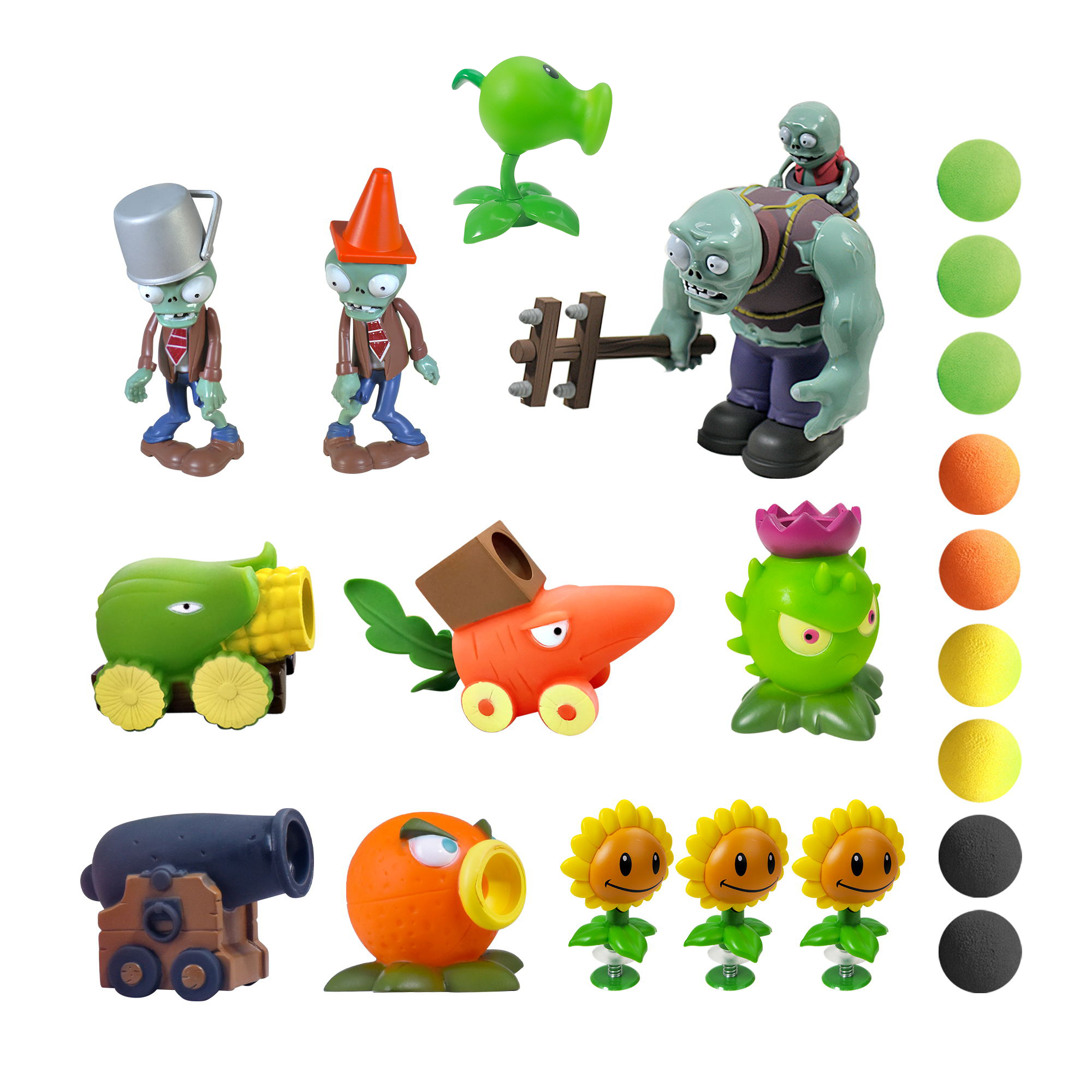 This set is made of high-quality PVC material and silicone material. This plant versus zombie toy gift set conforms to Standard Consumer Safety Specification on Toy Safety ASTM F963-17.Our toys feature superb craftsmanship, smooth surfaces and edges so your child can play safely. Each figure is designed and manufactured with great detail to perfectly match the game.Nine kinds of plants with different shapes, each with their own characteristics, can launch soft bombs to fight zombies and defend their homeland! When you use the pea shooter and other plants to throw zombies with soft balls, cute little zombies will jump out from behind the big zombies to support in battles.Conehead Zombie and Buckethead Zombie hats can be removed and arms can be shaken,very real and interesting.