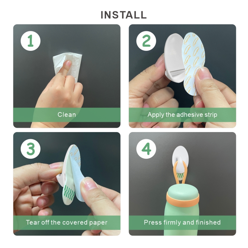 * Carefully peel the adhesive tape from the hook.(avoid touching the adhesive)