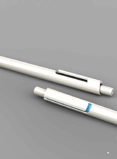 The flexible curves splits the barrel and clip, but connects them together as well. The colors that are revealed from the gap is stunning, as it shows a modern aesthetic concept.