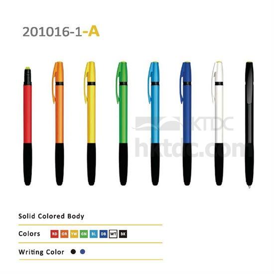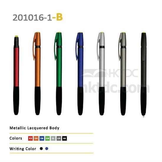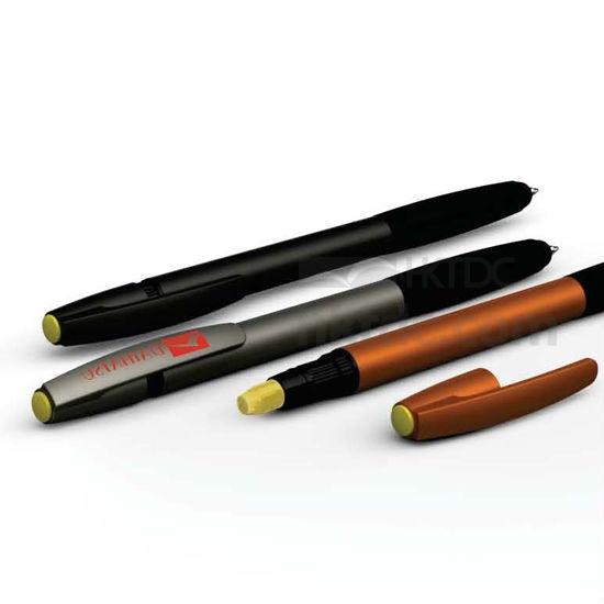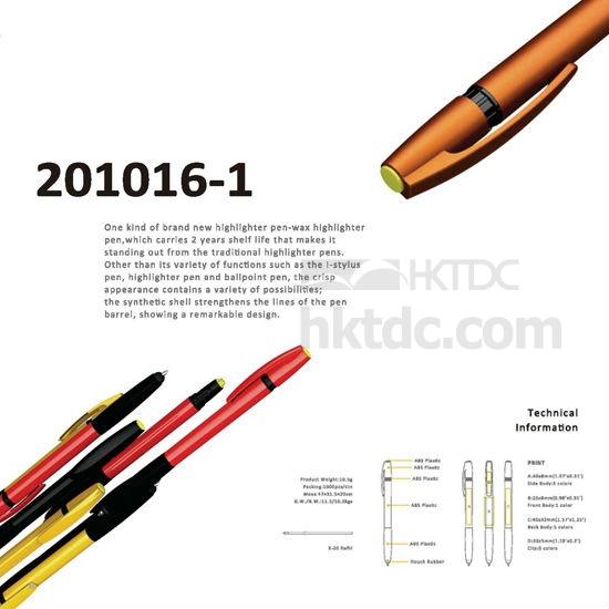 Twist action; metallic lacquered barrel w/black rubberized grip & yellow wax highlighter;