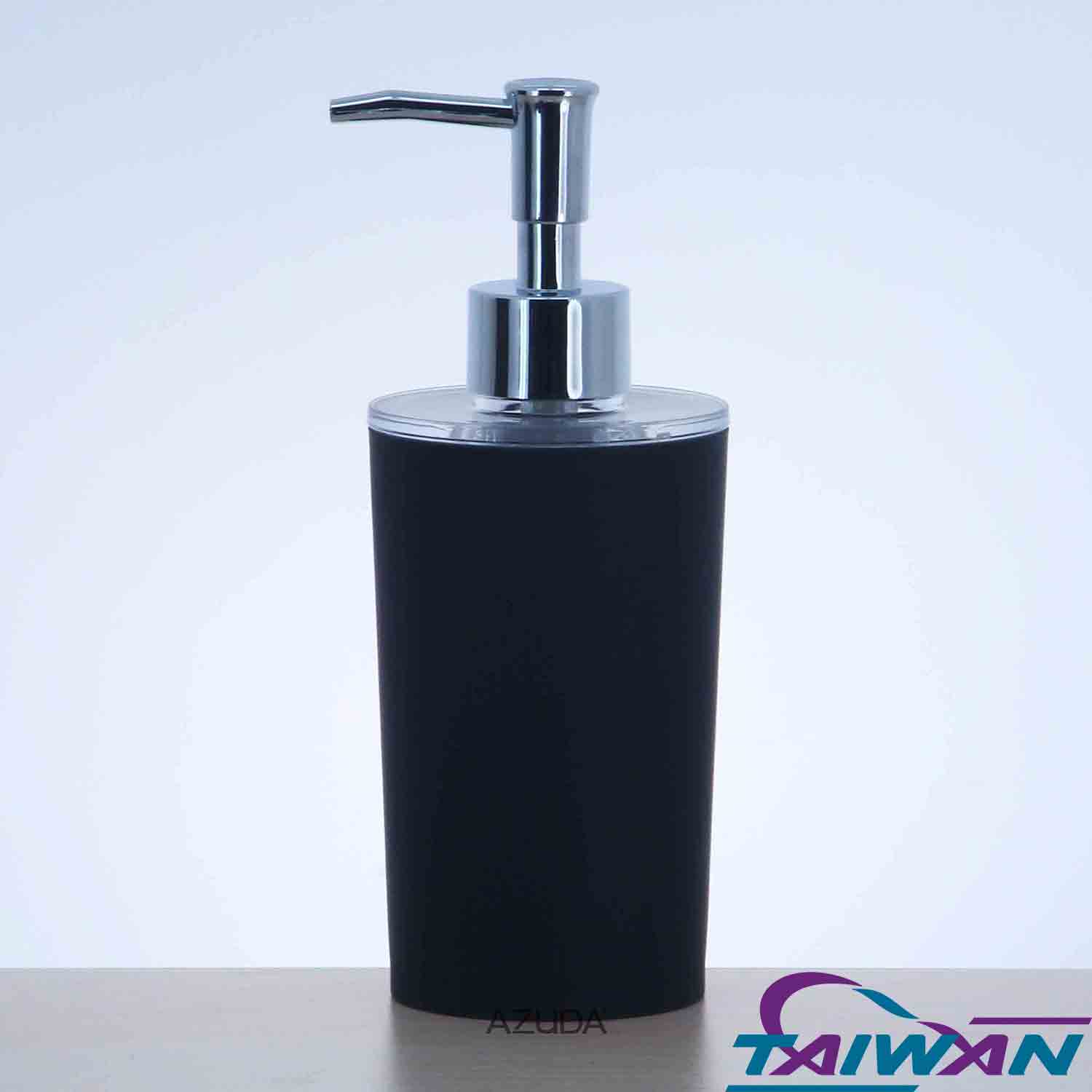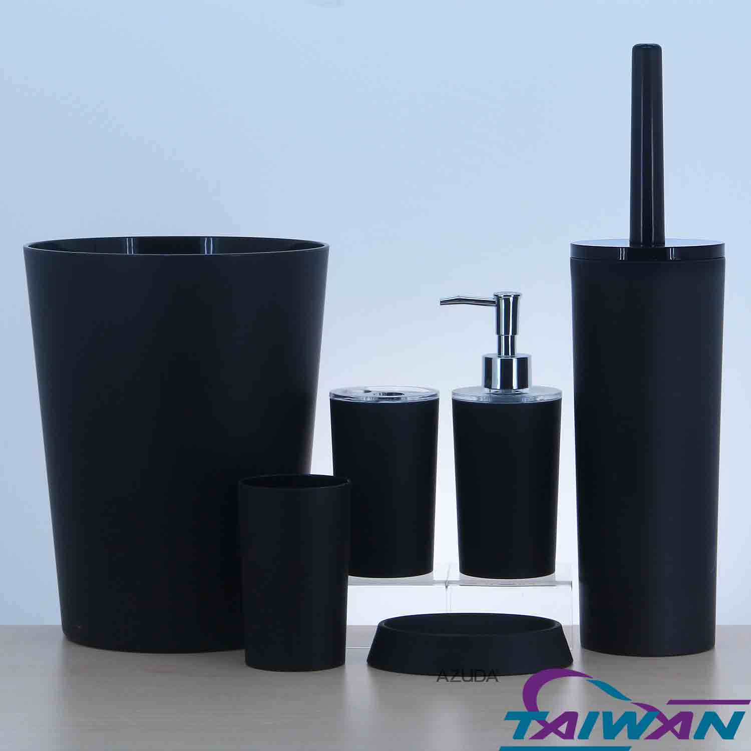 - Plastic bathroom accessories including lotion dispenser, toothbrush holder, tumbler and soap dish. Cylinder shape design in stainless steel finish decal. Simple concise design can perfectly blend into modern minimal art style architecture