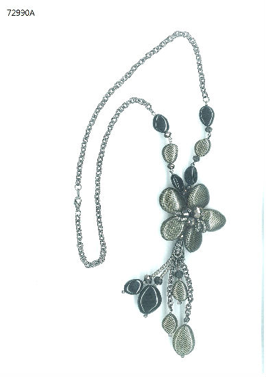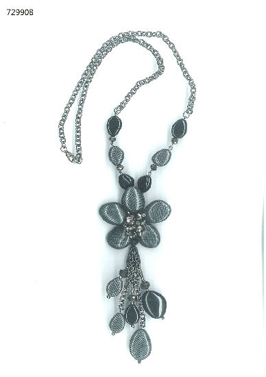 Plastic beads chain necklace with glass beads tassel.