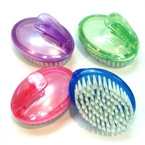 Showcased is a handy plastic body massager in a oval-shaped design. The massager is equipped with nylon bristles for bestowing soothing massage. It helps to stimulate circulation and relieve stress by having your body massaged.