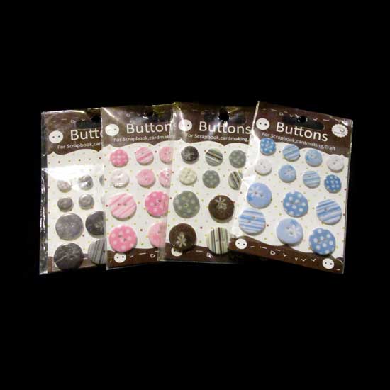 This is a series of plastic buttons that is especially designed for scrapbooking and card-making craft. These buttons are accented with different patterns of small white dots and snowflakes. The brightly-colored colors will give your craftwork a totally new look.