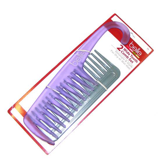 The featuring items are a set of two plastic combs for dry and wet hair. They have wide and long tooth suitable for detangling straight long hair and wavy hair.