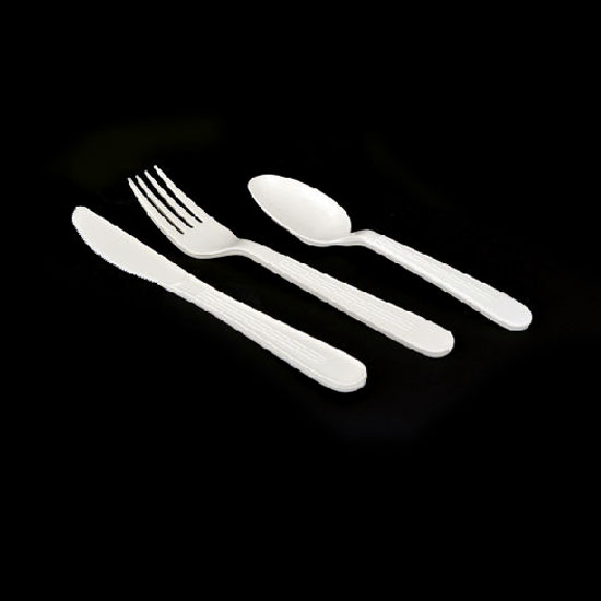 This cutlery set comes with a knife, a spoon and a fork. It is made of quality plastic for durability. This plastic cutlery set is a great choice for your household.