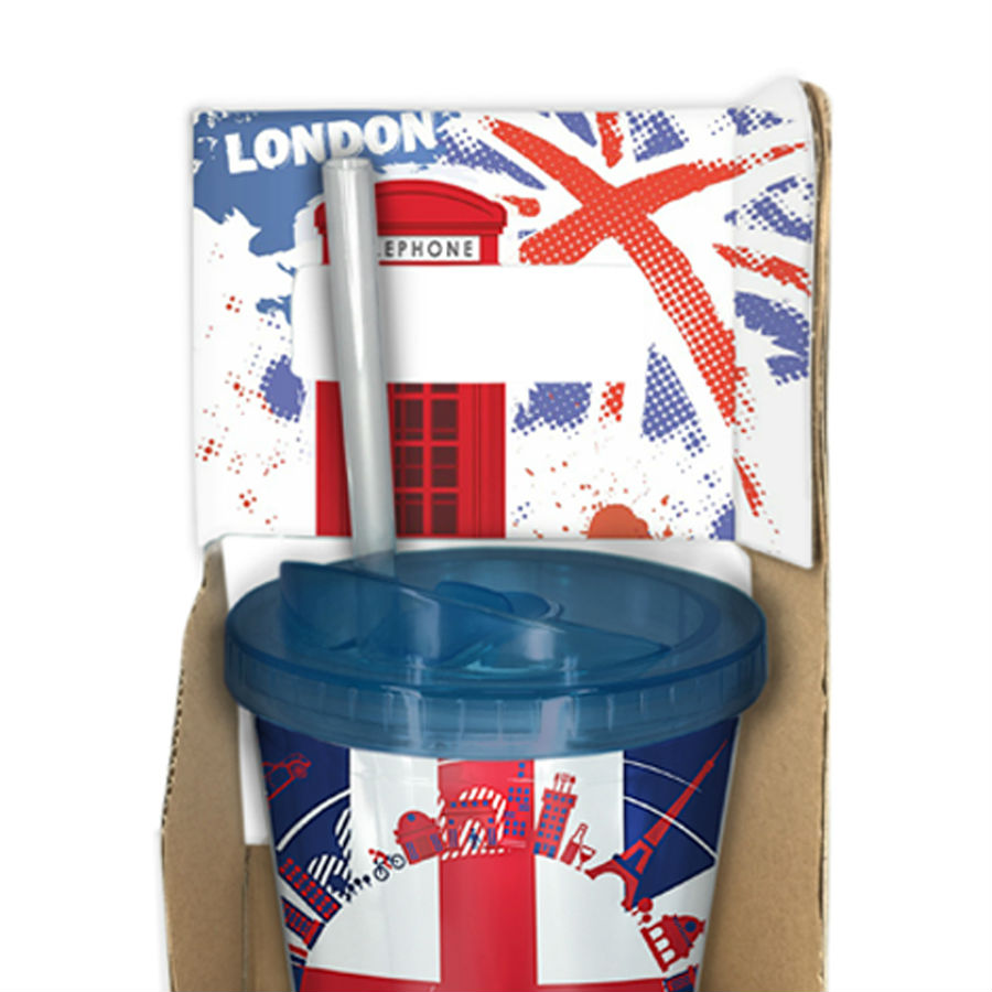 This tumbler realized in high-quality plastic is non-friable and durable, sporting a lovely look with the global attraction illustration. The classic double-wall insulated design keeps hot or cold drinks at the desired temperature for an extended time. With a spill-proof lid and reusable straw included, sipping your favorite drink on the go is no longer messy or inconvenient.