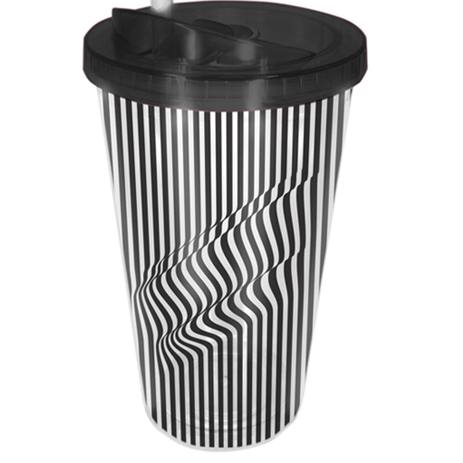 This tumbler combines style, functionality, and convenience in one. Built to keep your beverages hot or cold for a longer time, it has a double-wall construction and a lid. The playful strip illusion design is sure to set your tabletop apart.