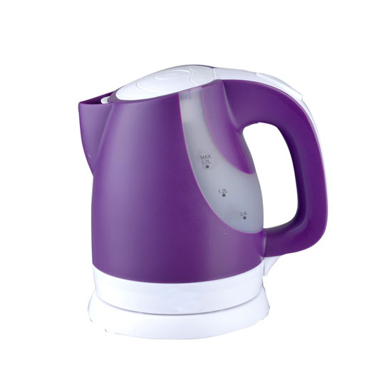 This electric kettle features a purple body with a matt finish. It features an ergonomic handle for easy carrying. This well-made device is a practical addition to your kitchen.