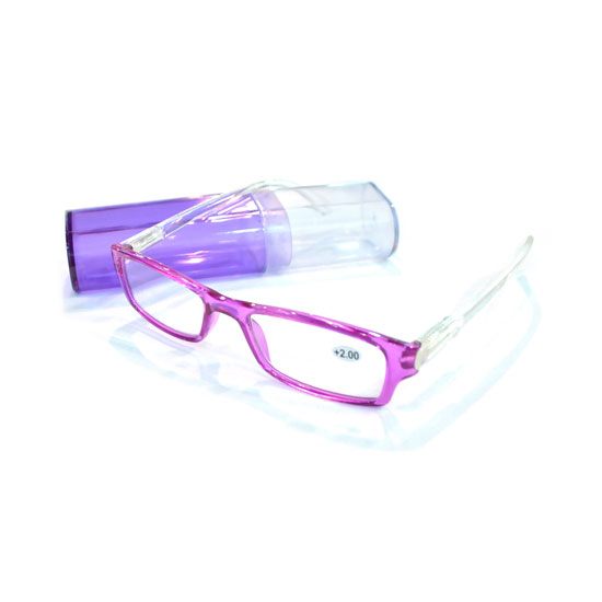This is a pair of plastic eyeglasses that comes in a purple color. Made of PC, these glasses are lightweight and durable. These transparent eyeglasses are suitable for both men and women.